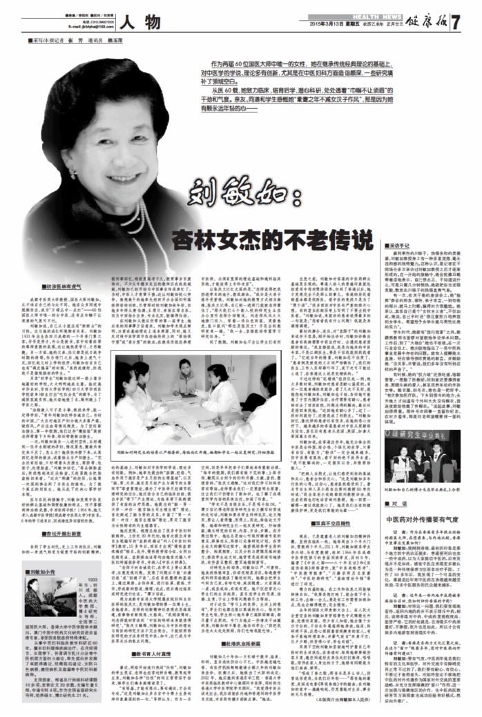 去年的国医大师表彰大会上,在人民大会堂安坐的刘敏如身穿棕黄色中式锦缎长外套,优雅而美丽。很少有人知道,她会像个女汉子似的,不但长年蜀港两地奔波,临床、科研两不误,还悉心照顾着宿疾缠身的家人,有条不紊地料理家务,并豪气放言“双肩不空,旦夕少暇,但苦得心甘,苦也有甜”。